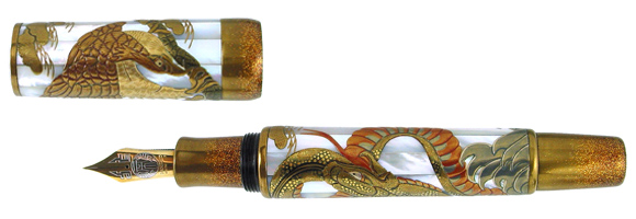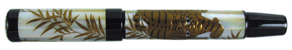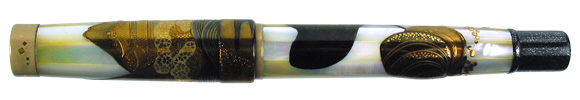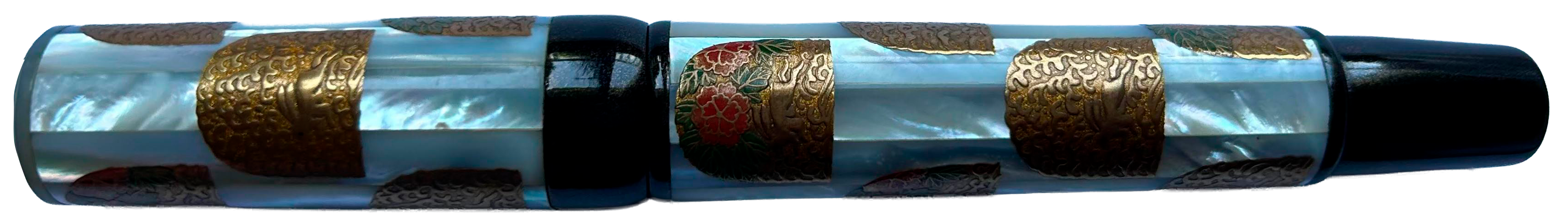 Large pieces of mother of pearl are hard to come by, especially when the pieces have to be very long. They are not only costly, but one also has to wait for a long time just to procure a few pieces. We decided it was worth the wait, as you can see in these Maki-e designs for our collection. This pen is also made with the Eyedropper system. The nibs are #8, like both the Mikado and Genkai.