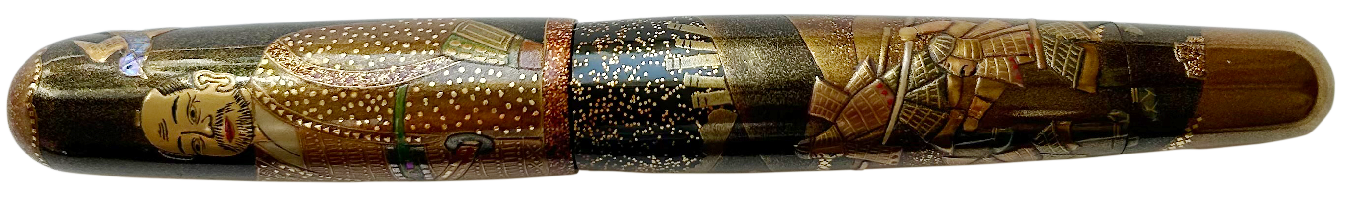 At present, there are four major Maki‑e artists working on our Maki‑e. All four were students of Masanori before they became freelancers. Masanori’s most recent work is the Maki‑e on the walls in the main hall of the well‑known Kissho‑in temple in Chita City of the Aichi prefecture. Omote-san has made Maki‑e for us for more than 5 years, and his masterpieces, such as the Tokaido series, have been very well received. His recent works include “Fixed Stars”, “Miyama Enreiso”, “Four Seasons from Ise Monogatari” and of course, “Kirin.” He will appear at the upcoming Washington DC Pen Show with these remarkable works. After more than 50 years of working with Maki‑e, he is now one of the very few artists whose works are deemed “collectible” today.