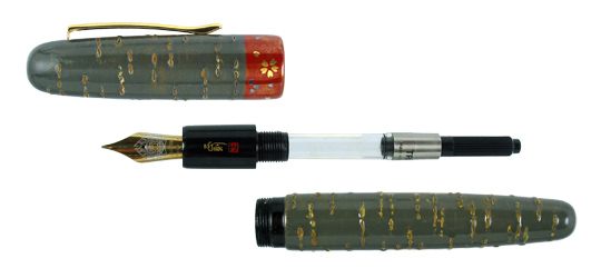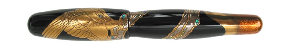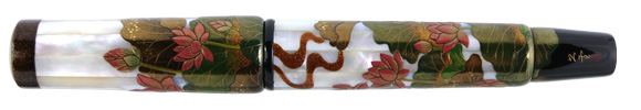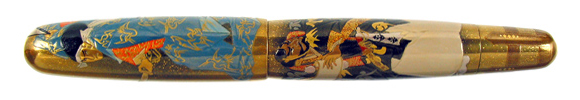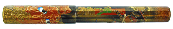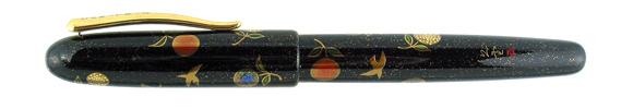 Our fountain pen barrels are made of 100% Japanese ebonite, except for the pens in the Kaijin Collection, which are made of high quality mother of pearl and ebonite. All of our pens feature Maki-e designs on them.